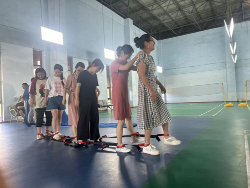 7月4日上午,学工处心理咨询中心在学校羽球馆对全校辅导员进行了素质拓展培训。活动开始,学工处心理咨询中心主任涂春华介绍了素质拓展培训的目标和注意事项并提出了活动要求。本次培训依次开展了有轨电车、风火轮、珠行万里、袋鼠跳等四个项目。尽管天气炎热,辅导员的参与积极性却很高,每个人先选择自己感兴趣的项目体验,再互相交换进行。本次拓展培训引入了竞赛的理念,更激发了辅导员们的参与热情。