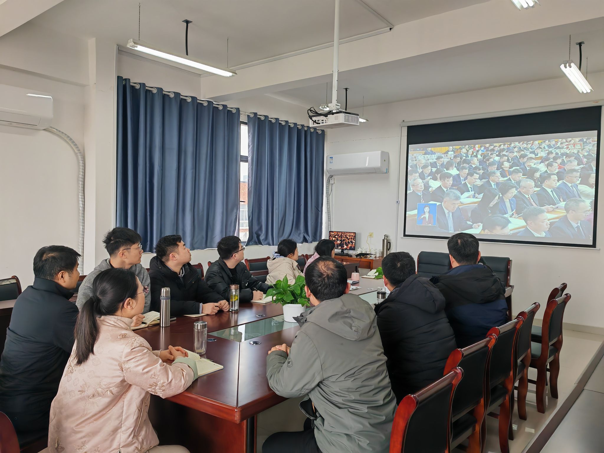 3月5日上午9时,十四届全国人大四次会议在北京人民大会堂隆重开幕。学院组织无课师生代表在学院会议室、党员活动室集中收看开幕会直播,认真聆听政府工作报告。